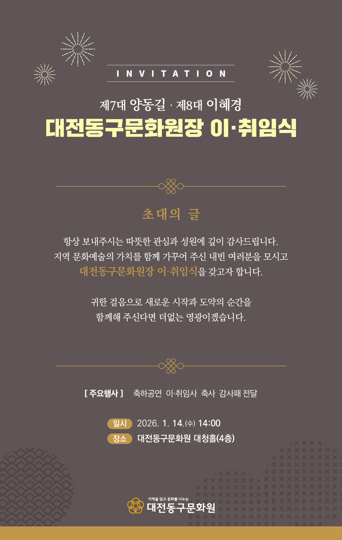 대전동구문화원장 이.취임식 안내