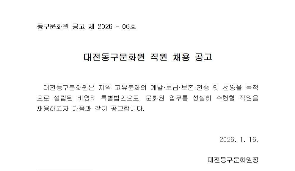 대전동구문화원 직원 채용 공고